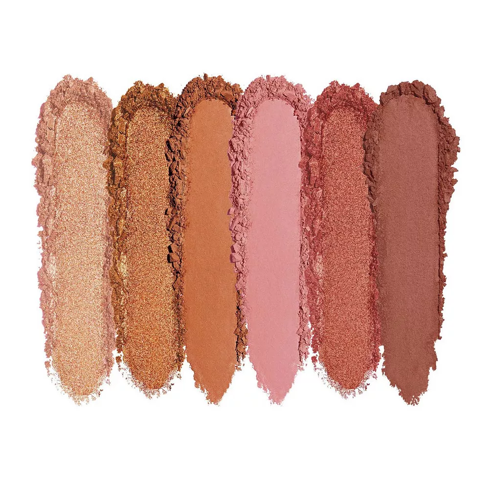 – 6 x 0.03 oz/ 0.85 g eyeshadows in shades Positive (metallic light rose gold), Energized (metallic golden amber), Dynamic (matte warm tan), Magnetic (matte rosy mauve), Creativity (metallic raspberry), and Power (matte maroon)